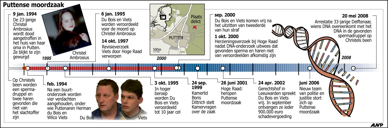 Advies voor nieuwe straf Puttense moordzaak | NU - Het ... from media.nu.nl Sinds 2006 heeft een compleet nieuw rechercheteam van vijftien personen aan de puttense moordzaak gewerkt. De puttense moordzaak staat bekend als één van de grootste rechterlijke dwalingen uit de nederlandse geschiedenis. De puttense moordzaak is een van de meest geruchtmakende gerechtelijke dwalingen in de nederlandse geschiedenis. Aangehouden op verdenking van verkrachting en moord op 23 jarige stewardess christel ambrosius. 'veroordeling in puttense moordzaak opnieuw gerechtelijke dwaling'. Twee puttense mannen, wilco viets en herman du bois, hebben jarenlang onterecht. Welke wet is er overtreden ? De gevolgen van dubieuze verhoormethoden worden dramatisch duidelijk.